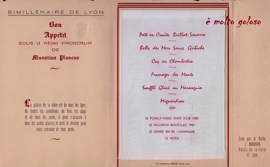 Menu Bimillinaire de Lyon – Joannès NANDRON Mof Cuisine 1949. Partager : Partager sur X(ouvre dans une nouvelle fenêtre) X Partager sur Facebook(ouvre dans une nouvelle fenêtre) Facebook J’aime chargement… Similaire