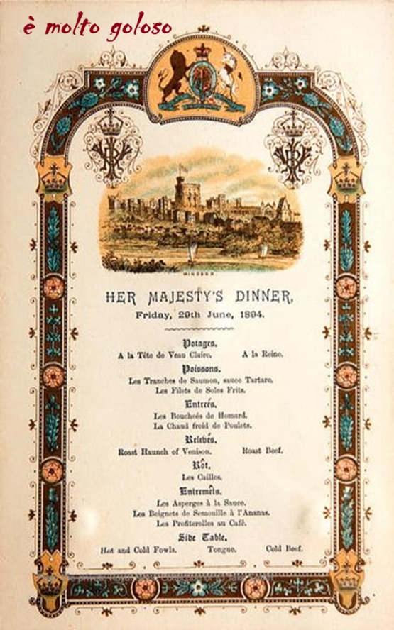 Menu Dîner Fiançailles du Tsarévitch Nicolas et de la Princesse Victoria Alix de Hesse – vendredi 29 juin 1804.