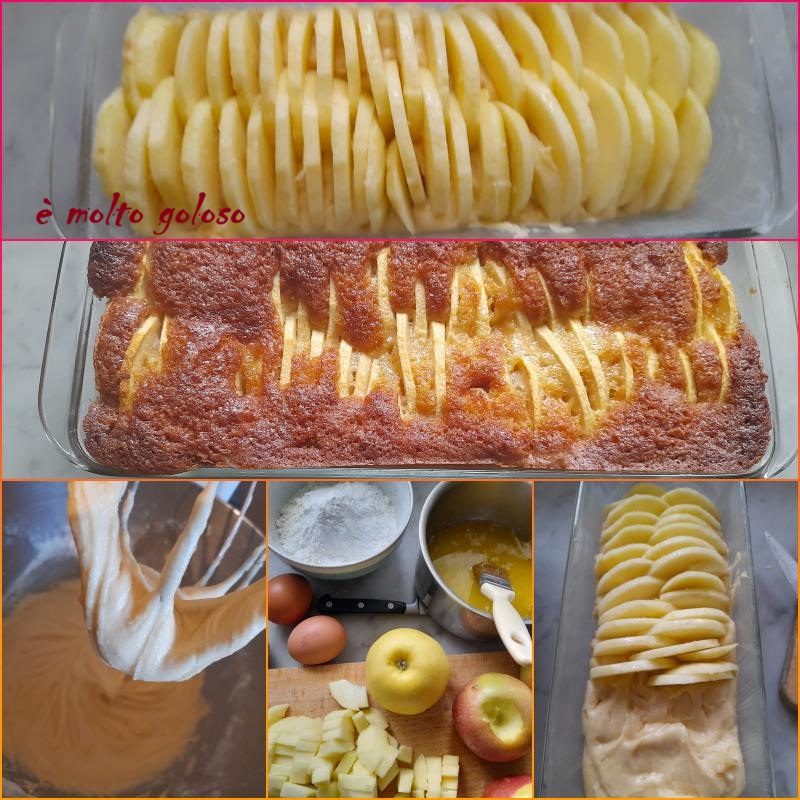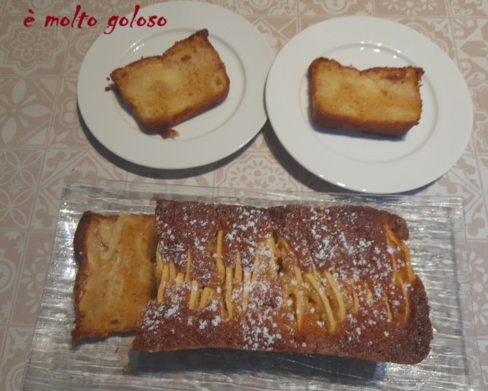 - Mouler dans un moule à cake beurré. Ajouter les pommes émincées dessus en les insérant/enfonçant légèrement dessus (voir photo).