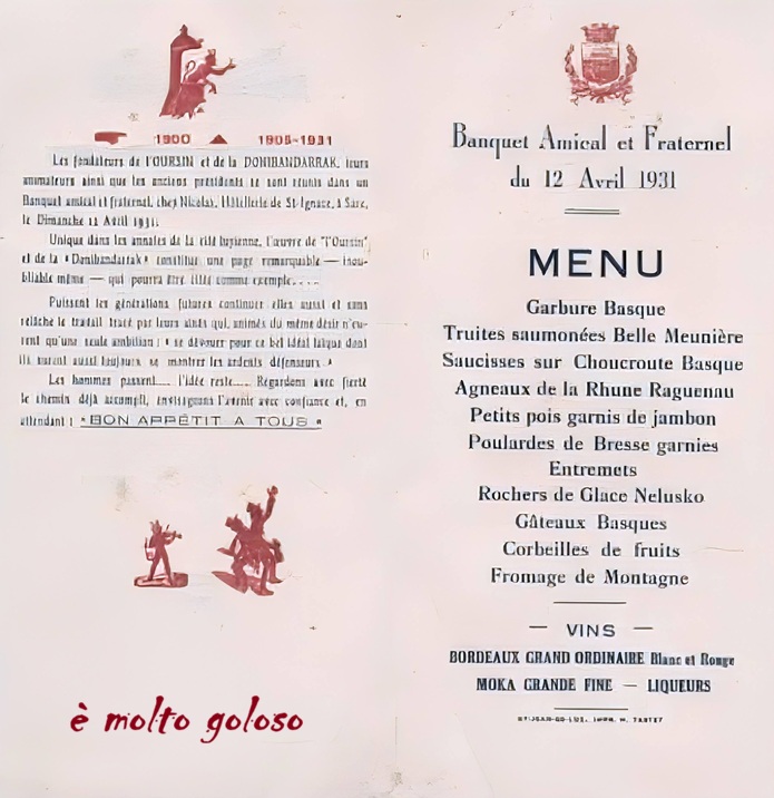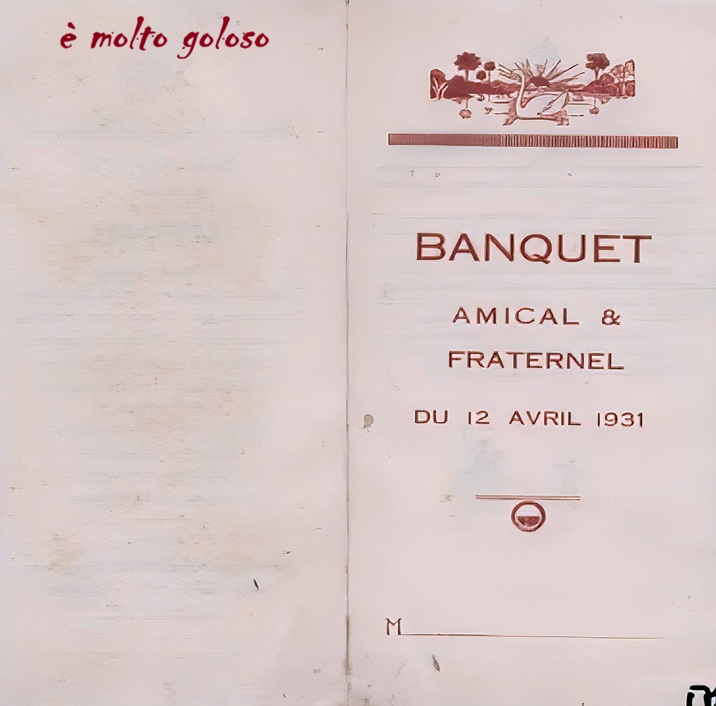 Menu Banquet Amical & Fraternel du 12 avril 1931. Partager : Partager sur X(ouvre dans une nouvelle fenêtre) X Partager sur Facebook(ouvre dans une nouvelle fenêtre) Facebook J’aime chargement… Similaire