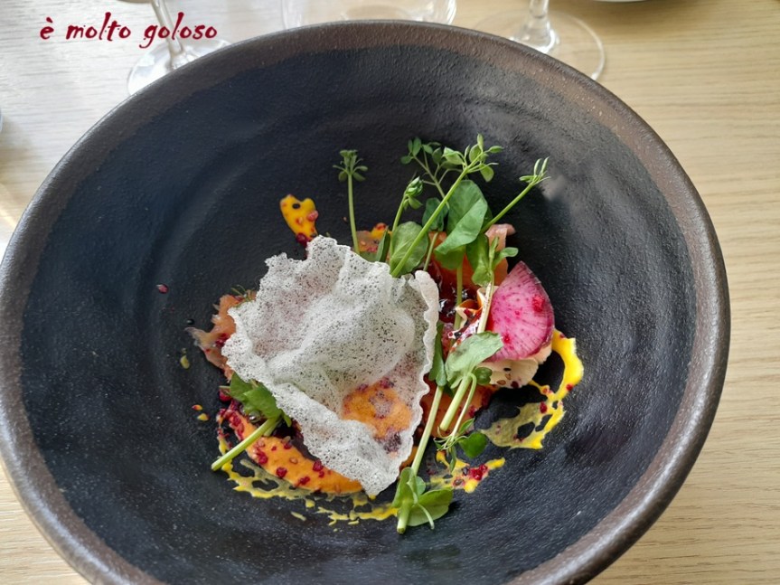 Restaurant Le P’tit Roseau à Issoire (63). Sympathique déjeuner ce mercredi 2 avril 2026 au restaurant Le P’tit Roseau à Issoire dans le Puy-de-Dôme. Autour du saumon et chorizo, chantilly pimentée et fanes de petits pois. Suprême de pintade sauté, radis et légumes oubliés. Poire, pomme et madeleine, sorbet baies d’açaï.