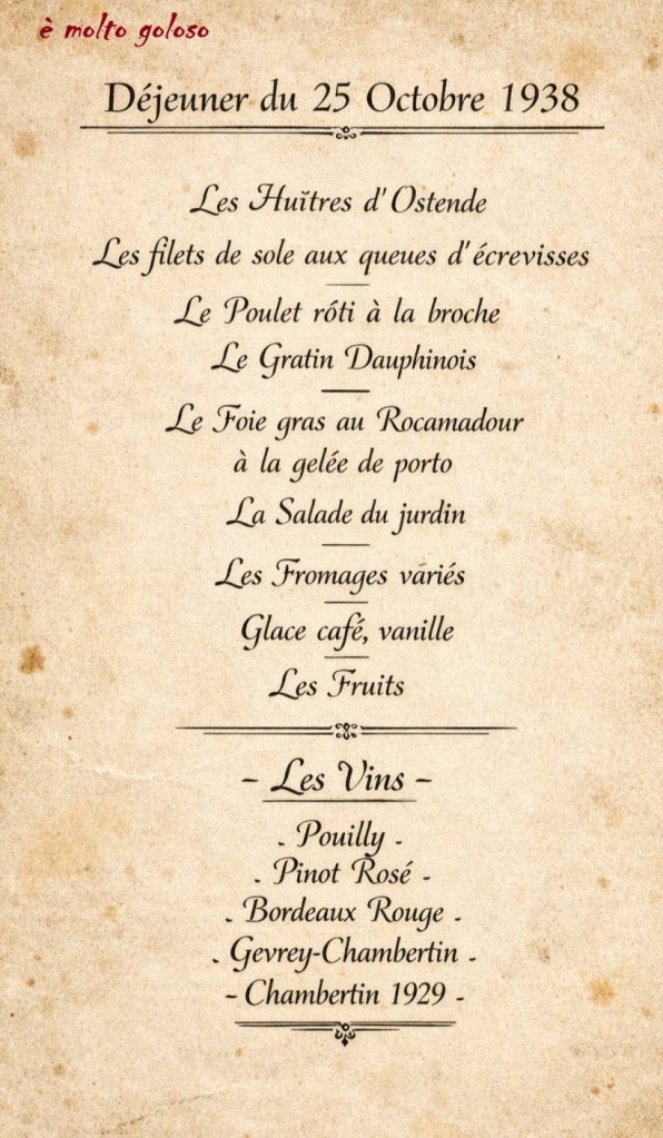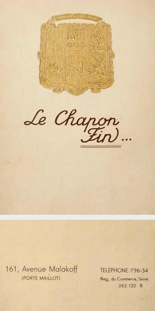 Menu Le Chapon Fin à Paris – Déjeuner du 25 octobre 1938. Partager : Partager sur X(ouvre dans une nouvelle fenêtre) X Partager sur Facebook(ouvre dans une nouvelle fenêtre) Facebook J’aime chargement… Similaire