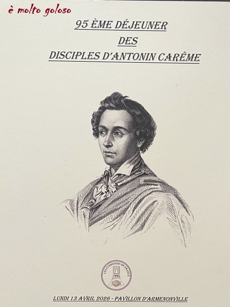 95ème Déjeuner des Disciples d’Antonin Carême lundi 13 avril 2026 au Pavillon d’Armenonville. Partager : Partager sur X(ouvre dans une nouvelle fenêtre) X Partager sur Facebook(ouvre dans une nouvelle fenêtre) Facebook J’aime chargement… Similaire