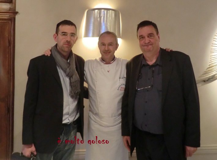 Avec Christophe Gasper (chef pâtissier chez Marcon à l’époque) et Philippe Girardon (MOF Cuisine) au Domaine de Clairfontaine en 2014.