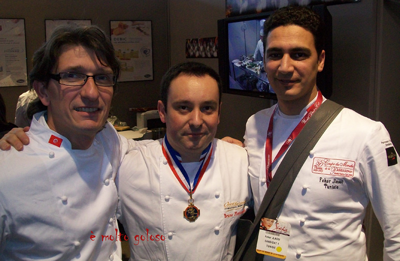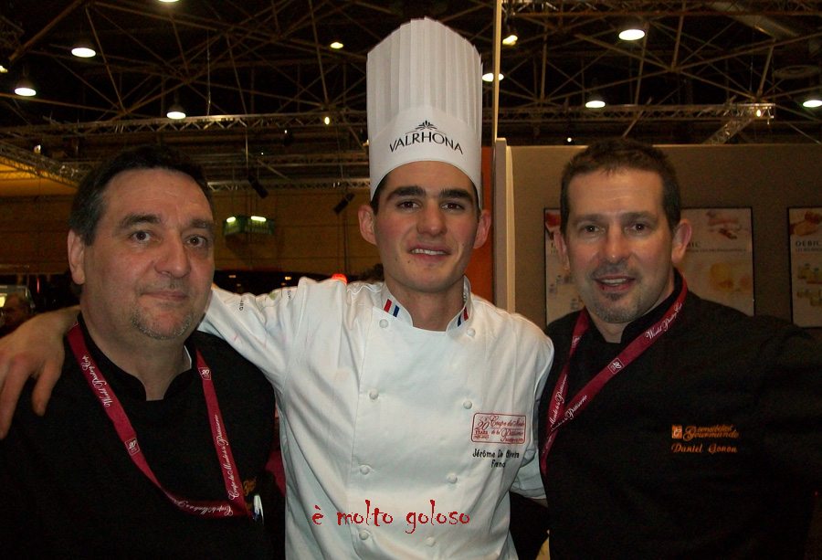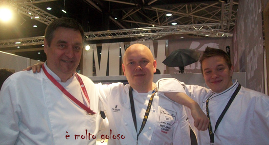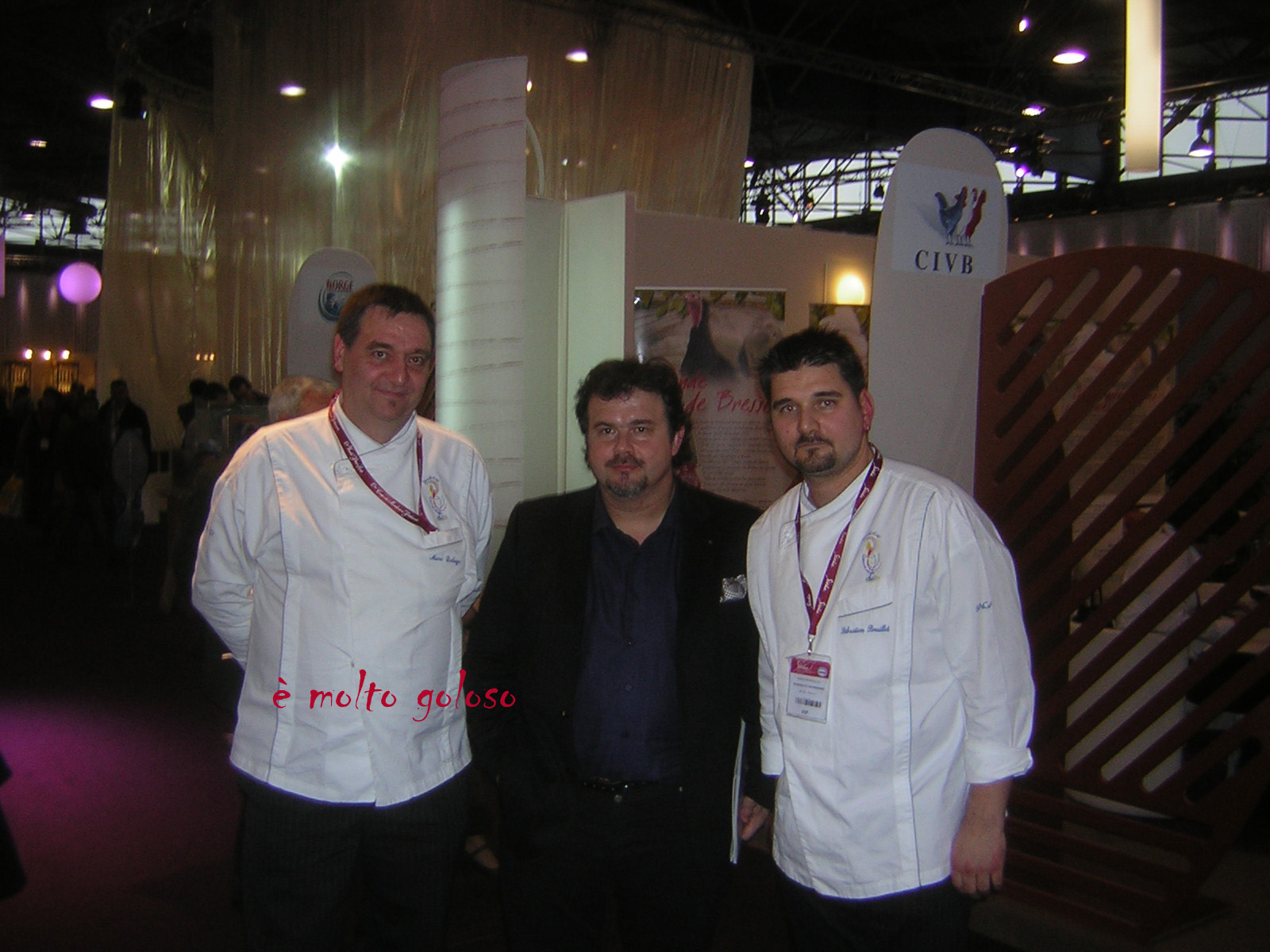 Avec Bruno Montcoudiol 5MOF Pâtissier 2004) et Serge Vieira (Bocuse d’Or 2005).
