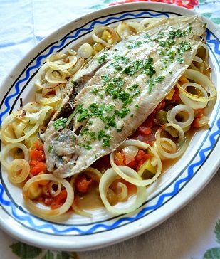 - ◊ Oignon et paprika. Napper de sauce hongroise. Déglaçage au fumet de poisson ou demi glace selon le cas.