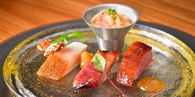 Le restaurant Myojaku du chef Hidetoshi NAKAMURA a l’honneur d’intégrer la famille des tables qui valent le voyage (3 étoiles).