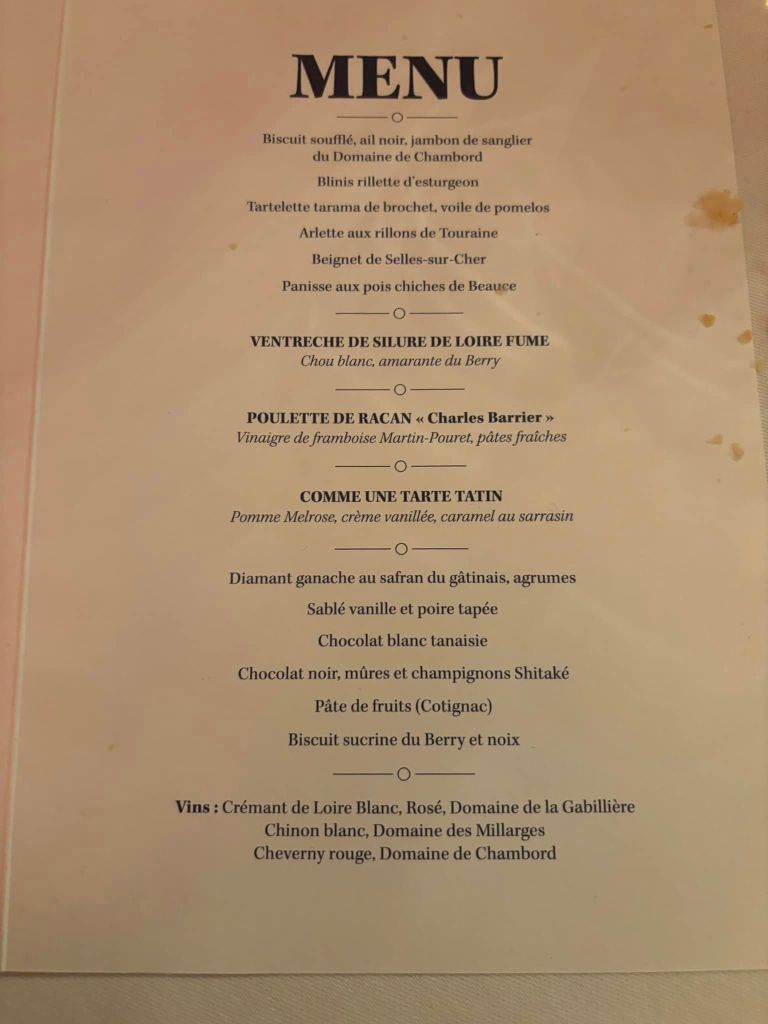Menu servi pour la Cérémonie des Étoiles Michelin 2024 à Tours.