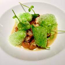 Avec l’expérience culinaire répartie sur trois étages du magnifique espace de rendez-vous, les clients peuvent s’attendre à passer au moins trois heures à dîner au Zén. Une fois entrés au rez-de-chaussée, ils traîneront près du comptoir de la cuisine pendant que les chefs montreront les produits de la soirée et serviront une série de cinq petites collations. Le dîner de huit plats est servi dans la salle à manger du deuxième étage, revêtue de bois brossé pâle et d’un plafond aux accents de cuivre. Des desserts, des fruits, des petits fours et des apéritifs sont servis au somptueux troisième niveau, tapissé d’une moquette moelleuse en écume de mer argentée et parsemé de canapés et de fauteuils bas.