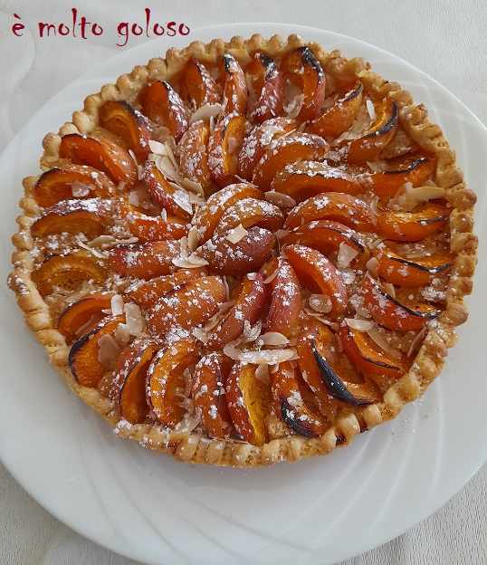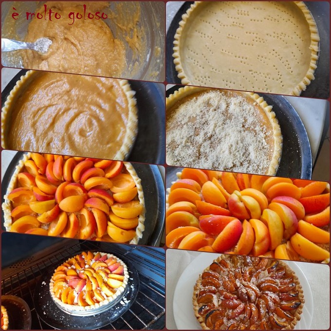 - Ajouter les 1/2 abricots en rosace en les posant sur la tranche. Finir avec des amandes effilées.