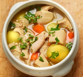Le trenèl mijote dans un bouillon salé et poivré, composé d’eau, de vin blanc, couenne, carottes, poireau, céleri, oignon, laurier et thym.