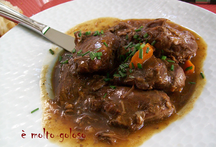 Le foie de boeuf entier mérite d’être lardé et longuement braisé avec une sauce plus relevée.