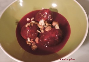 ♦ Réaliser la glace aux pralines : crème anglaise avec 200 grammes de jaunes d’oeufs, 125 grammes de sucre semoule, 100 grammes de sucre de canne, 1 litre de lait, 200 grammes de crème fleurette. Cuire à + 85°C, ajouter 150 grammes de pralines rouges concassées. Infuser. Sangler et turbiner.