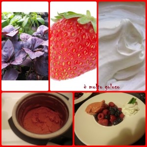 ◊ Laver, équeuter et couper 500 grammes de fraises Mara-des-bois. Les placer dans un bol pacojet. Ajouter 20 feuilles de basilic pourpre. Verser le sirop froid, couvrir et maturer 2 heures.