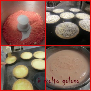 ♦ Confectionner une pâte sucrée : 120 grammes de beurre, 90 grammes de sucre semoule, 120 grammes de sucre glace, 75 grammes d’oeufs, 60 grammes poudre d’amande et 375 grammes de farine. Laisser reposer2 heures. Foncer 15 moules à tartelettes. Cuire à blanc. Isoler au beurre de cacao.