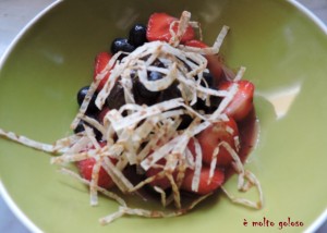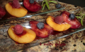 - ♦ Dresser en coupe froide : figue rôtie et Banyuls réduit, quenelle de sorbet mûres et crème au miel de ronce. Finir avec noisettes caramélisées.