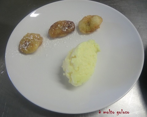 - ◊ Dresser sur assiettes froides : brochette de fruits et tranches d’ananas flambées, quenelle de sorbet carotte et meringue noix de coco.