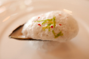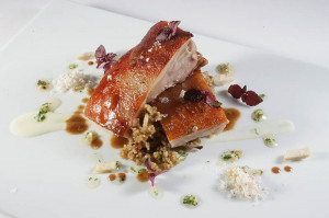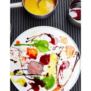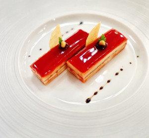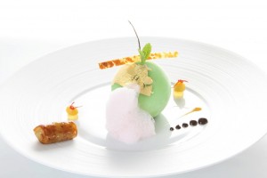 - Tartelette aux cèpes et au foie gras – Crabe royal, colchester cuit à la vapeur, beignet de crabe et consommé – Pomme Charlotte, beurre blanc, dulse, œufs de hareng et de truite – Poulet de 120 jours de la ferme St Brides, kolrhabi en spirale mariné, palourde, couteaux et caviar – Poire et verveine, sorbet poire williams.