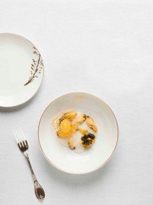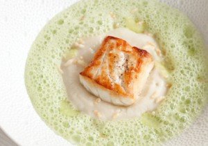 - Foie gras de canard en escalope, galette de maïs frais, miel de Saint Marcel, chapelure végétale réduit de vieux vinaigre