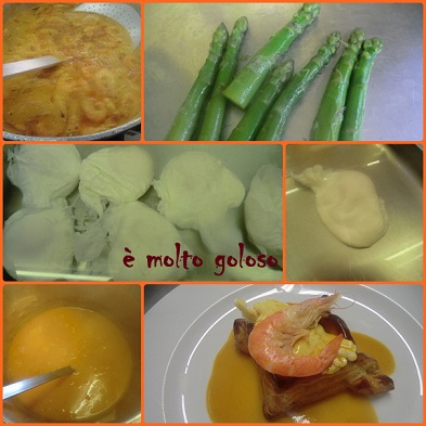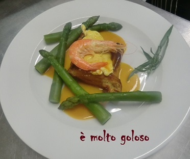 - ♦ Dresser sur assiettes chaudes : feuilleté évidé garni d’un oeuf poché, disposer 5 asperges par assiette. Napper de sauce crevette. Finir avec 1 crevette et des pluches d’estragon.
