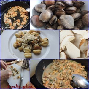 ◊ Nettoyer, couper 750 grammes de cèpes (funghi porcini) en morceaux. Sauter à l’huile d’olive (légère coloration). Assaisonner.