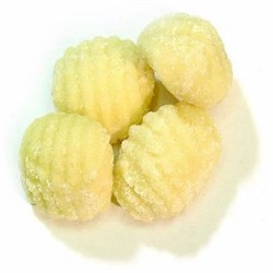 ◊ Former des » boudins » de 1,2 de Ø et couper des tronçons de 1 cm environ. Rouler sur le dos d’une fourchette pour réaliser les sillons et 1 creux. Fariner et réserver sur linge propre.