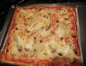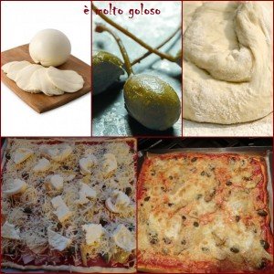 ◊ Garnir de coulis de tomate. Ajouter le jambon, des câpres, quelques tranches de tomates crues. Finir avec tranche de mozzarella et fromage râpé .