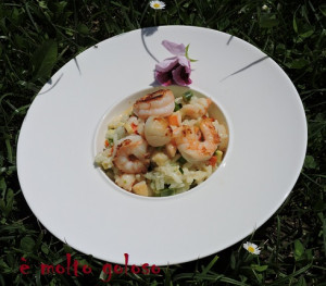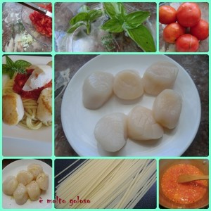 - ◊ Dresser en assiettes creuses : linguine, tomate concassée et noix de Saint-Jacques. Finir avec thym frais, basilic et copeaux de parmigiano reggiano. Déguster chaud.