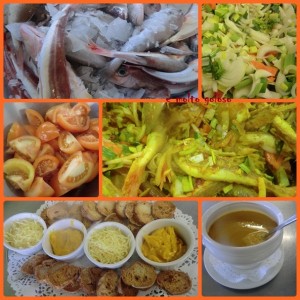 Des poissons en filets ou entiers peuvent être cuits dans cette soupe, ainsi que des pommes de terre au safran. La soupe sera alors servie en premier service et les poissons cuits, pommes de terre et garniture en deuxième service. Cette préparation pourra prendre l’appellation de Bouillabaisse.