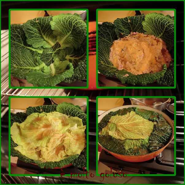 ◊ Graisser à la graisse d’oie une grosse cocotte en fonte. Chemiser avec les feuilles de choux blanchis (les plus vertes). Tapisser avec la farce, ajouter les feuilles, la farce, etc.